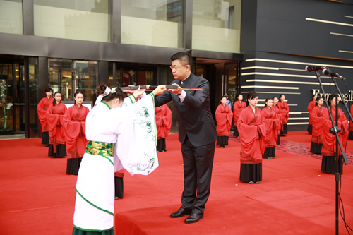 “人類因夢(mèng)想而偉大,企業(yè)因文化而繁榮”。為迎接國(guó)芳集團(tuán)十六周年司慶,9月5日9時(shí)許,于國(guó)芳百貨購(gòu)物廣場(chǎng)正門盛大舉行了傳統(tǒng)漢式迎賓禮——鄉(xiāng)飲酒禮;顒(dòng)雖然已經(jīng)結(jié)束多日,但其熱度不減,該活動(dòng)形式新穎,文化氛圍濃厚,引各方專家學(xué)者熱議。