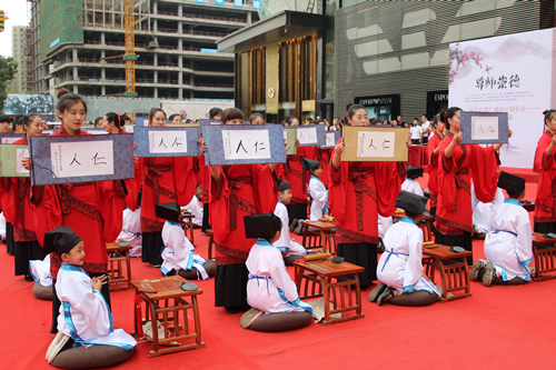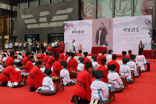 傳承中國文化,啟發(fā)學(xué)子奮發(fā)向上,再現(xiàn)古典禮儀之莊重恢弘。9月10日,國芳集團(tuán)在東方紅廣場舉行大型漢式拜師禮開筆禮儀式。本次活動共招募40名6-9歲的學(xué)子參加。拜孔子、點朱砂、擊鼓明志,引眾多市民觀禮。
