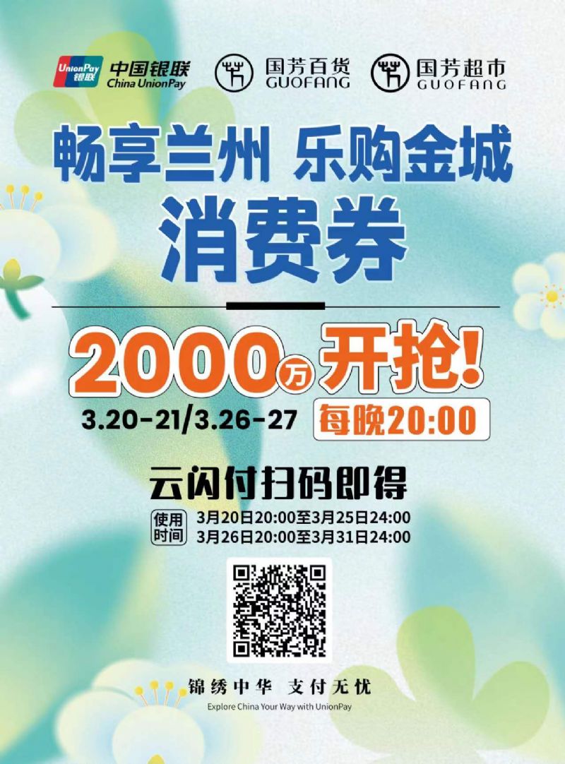 本次消費券具體發(fā)放時間為3月20日至3月31日,將分2個階段4個批次發(fā)放,分別為3月20日、3月21日、3月26日、3月27日的每晚20:00至24:00。消費券涵蓋國芳百貨、國芳超市以及國芳百貨內(nèi)的餐飲場所等3個場景共計38萬余張,消費范圍覆蓋美妝、服飾、餐飲及國芳超市等多品類消費場景,旨在激發(fā)春季消費潛力,鞏固傳統(tǒng)消費,共同繁榮城關(guān)商貿(mào)經(jīng)濟,助推零售商業(yè)市場平穩(wěn)發(fā)展。(廣大市民將通過“云閃付”APP領(lǐng)取并核銷,具體活動規(guī)則、適用范圍等信息可登錄“云閃付”APP查看。)