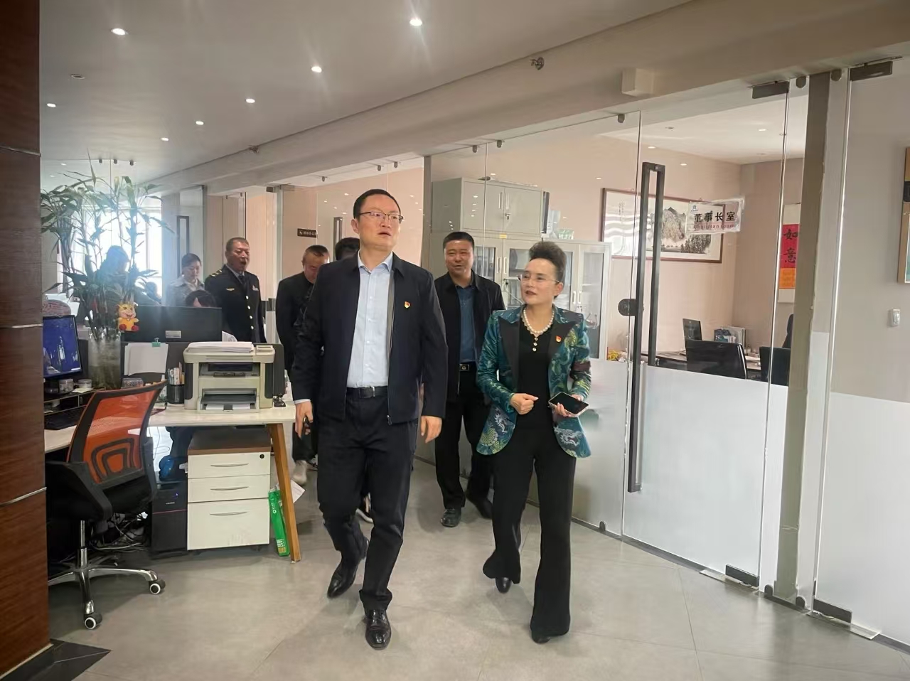 2024年4月26日,甘肅省市場(chǎng)監(jiān)督管理局小微企業(yè)個(gè)體工商戶專業(yè)市場(chǎng)黨建工作處侯巍處長(zhǎng)與省、市、區(qū)、街道四級(jí)市場(chǎng)監(jiān)管局非公有制經(jīng)濟(jì)黨建處室相關(guān)負(fù)責(zé)人一行蒞臨國(guó)芳集團(tuán)黨委進(jìn)行調(diào)研指導(dǎo)并座談交流。