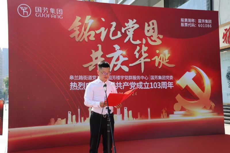 為慶祝偉大的中國共產(chǎn)黨建黨103周年,進一步貫徹落實黨的二十大精神和習近平總書記關(guān)于黨紀條例學習教育的重要講話和指示精神,豐富黨員和員工文化生活,在七一建黨節(jié)即將來臨之際,國芳集團黨委協(xié)同皋蘭路街道黨工委、國芳樓宇黨群服務(wù)中心入駐企業(yè)黨組織共同舉辦“銘記黨恩、共慶華誕”慶祝中國共產(chǎn)黨建黨103周年主題黨日活動。